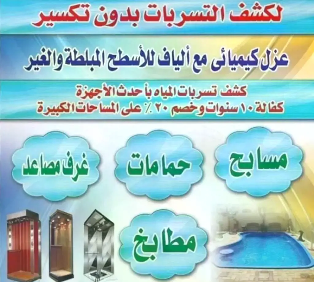 - تساعد الشركة من خلال العمال بها الحفاظ على مخـتلف أجزاء المـنزل من أضرار تسرب المياه داخل الـجدران.
