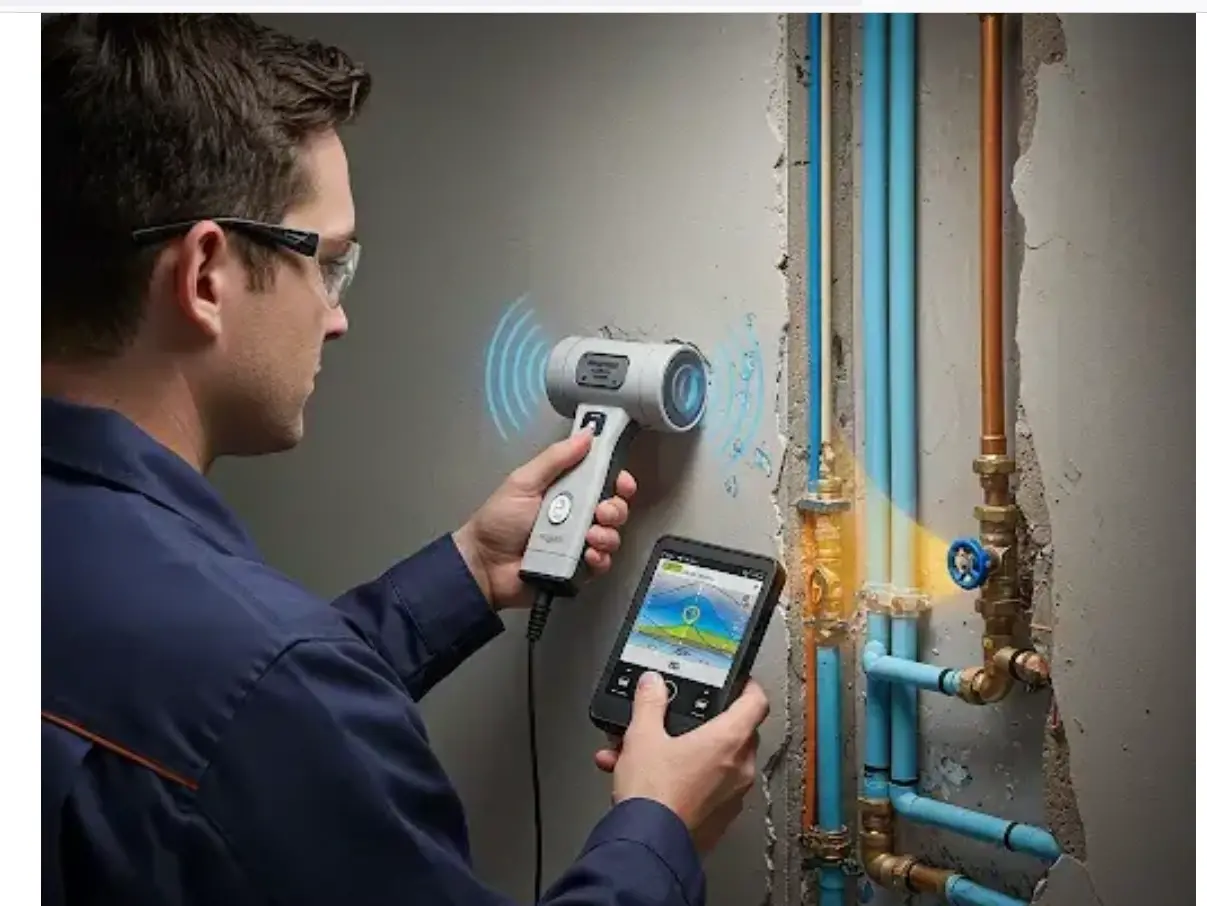 أما اليوم، فقد غيرت شركة المعمار هذه المفاهيم تماماً؛ فنحن نستخدم منظومات فحص لا تلامسية تعتمد على استشعار الذبذبات والحرارة. يبدأ فريقنا الهندسي بعملية “مسح شامل” للمبنى لتحديد المسارات المشبوهة، ثم يتم استخدام أجهزة الاستماع الأرضي فائقة الحساسية التي تلتقط صوت اندفاع المياه من أصغر الثقوب خلف الجدران الخرسانية بعمق يصل إلى عدة أمتار.