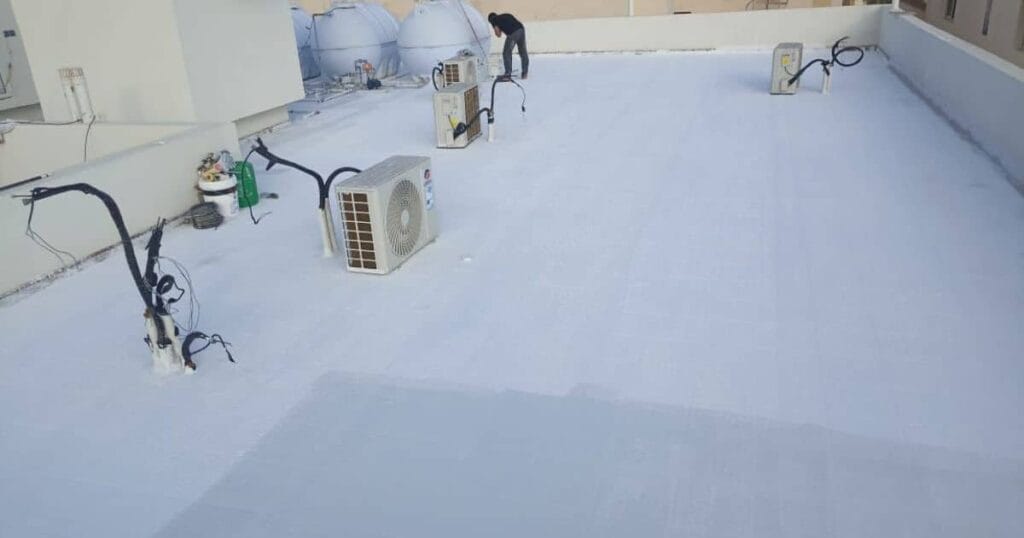 | العزل المائي | منع تسرب المياه والرطوبة | يحمي الخرسانة، يقلل الرطوبة، يمنع تسربات الأمطار | الأسطح المعرضة للمياه أو تجمعات الأمطار | مناسب جدًا للأسطح التي تعاني من تسربات فعلية |